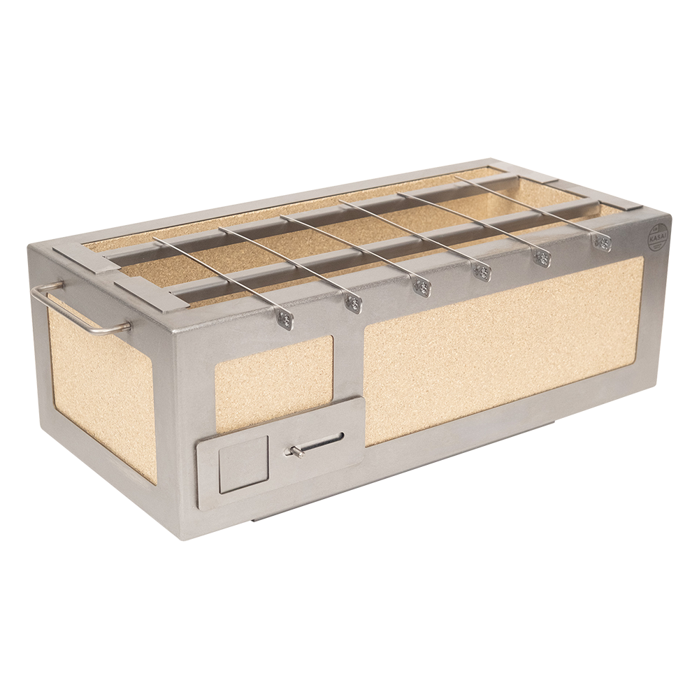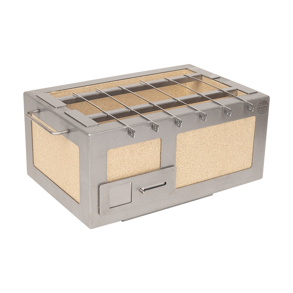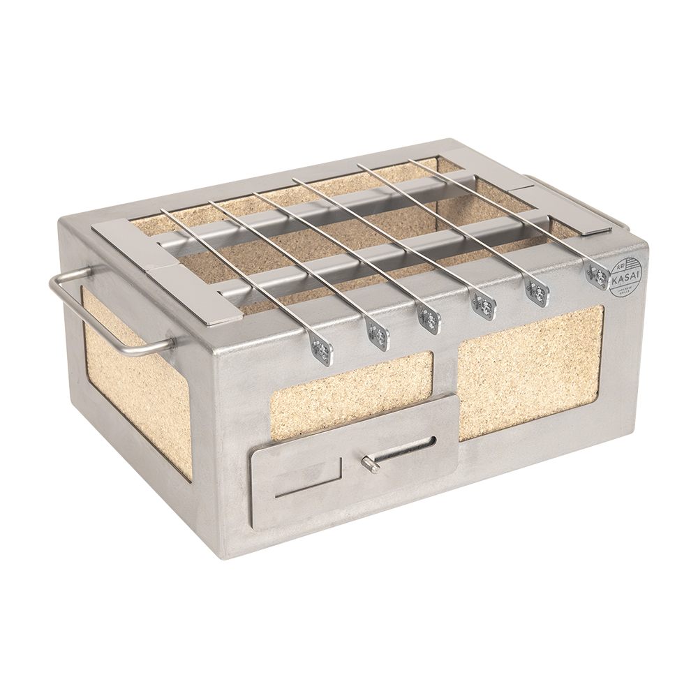 The Kasai Hibachi Bar & Skewer Set Edition combines your choice of Kasai Konro Grill with our new Kasai Hibachi Bar & Skewer Set, giving you the option to use the Kasai on its own with the included mesh top or with the Kasai Hibachi Bar & Skewer Set.